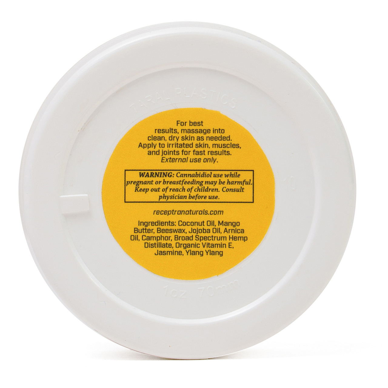 This all-natural 0% THC CBD hemp topical contains arnica and jojoba to help minimize swelling and inflammation. Naturally scented with soothing jasmine, ylang ylang, and camphor to promote efficient recovery for muscles and joints and to open up pores for better delivery.